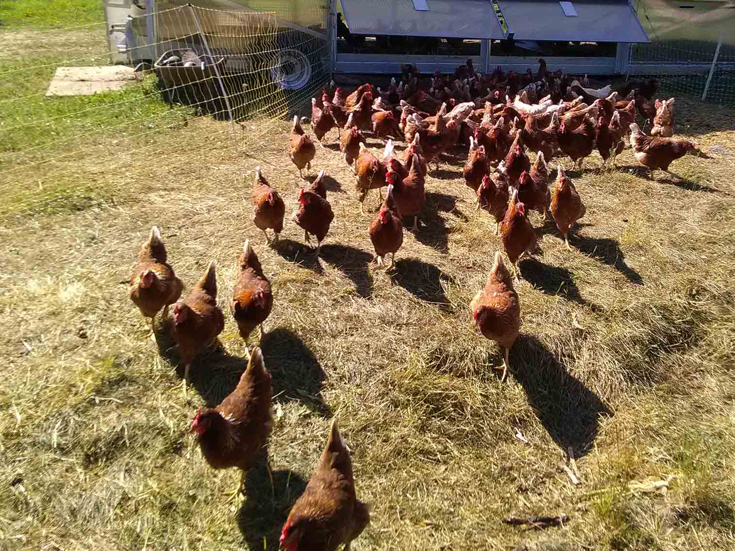 Nos poules (en plus de manger de bons produits) peuvent pâturer librement. C’est ça le secret de bons oeufs !